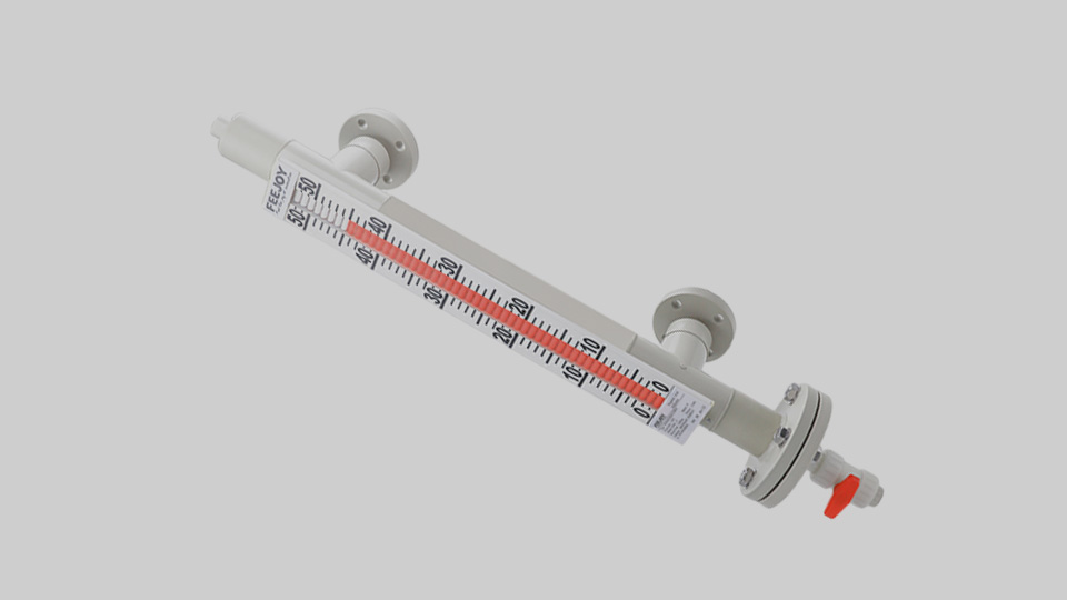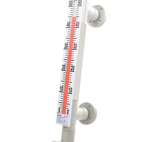 液位計根據(jù)浮力原理,浮子在測量管內(nèi)隨液位的升降而上下移動,浮子內(nèi)的永久磁鋼通過磁合作用,驅動紅、白色翻柱翻轉180液位上升時,翻柱由白色轉為紅色,下降時,翻柱由紅色轉為白色,從而實現(xiàn)液位的指示。